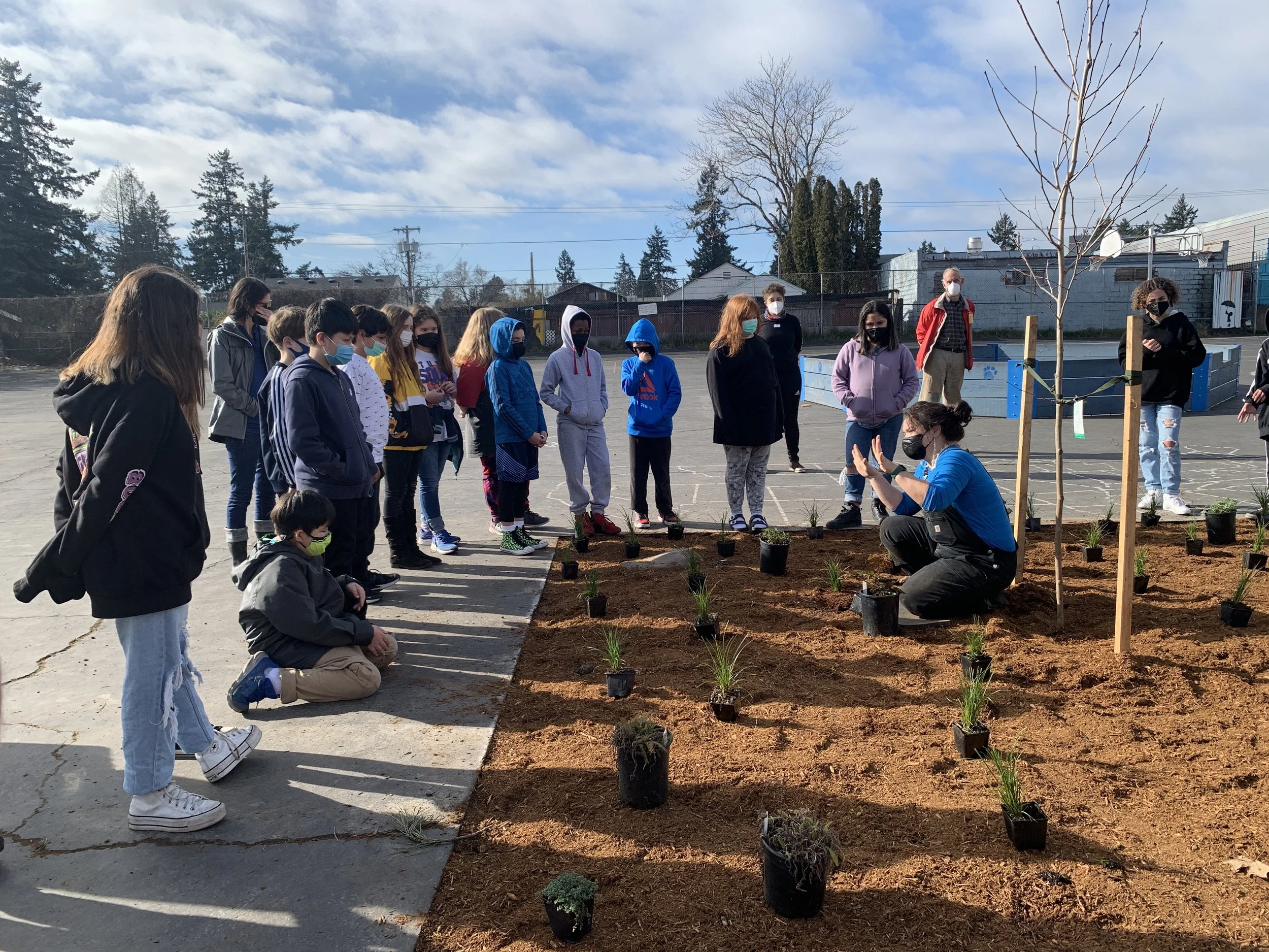 Join us for a Green Thumbs event! We will be planting, weeding, mulching, and generally giving some love to a previous Depave projects site, Whitman Elementary School! Tools, gloves, instruction, snacks, and safety will be provided by Depave on the day of the event.